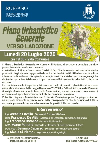 Ieri in una sala quasi vuota ho partecipato alla riunione programmata dall’amministrazione comunale per presentare alla cittadinanza il Piano Urbanistico Generale del paese (PUG). Con giusta enfasi nel manifesto pubblico a firma dell’assessore preposto e del Sindaco che rappresenta l’intera amministrazione comunale era scritto: “L’obiettivo di questa Amministrazione è di offrire l’occasione per un’ampia partecipazione a questo momento di condivisione, nella consapevolezza che il contributo di tutta la comunità possa solo portare ad accrescere la qualità del lavoro svolto.”