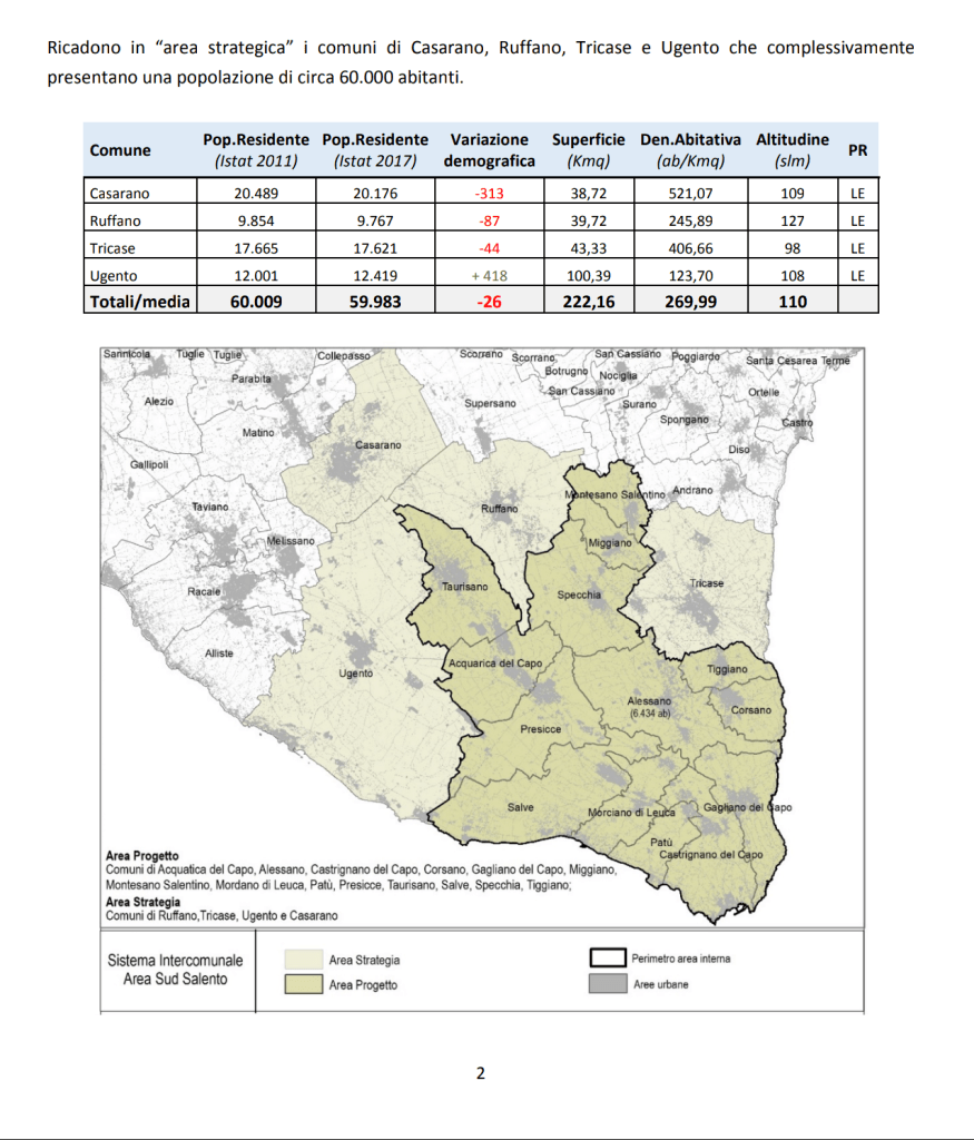 Conosco perfettamente il progetto in questione e so che il comune di Ruffano non ricade nei 14 comuni dell’Area Interna del Sud Salento, ma fa parte dello stesso più ampio piano strategico che oltre ai 14 comuni comprende anche Casarano, Ugento e Tricase. Il Piano Strategico prevede in sostanza delle misure per agevolare tutta l’area strategica, compreso il comune di Ruffano.